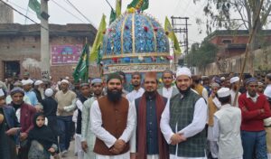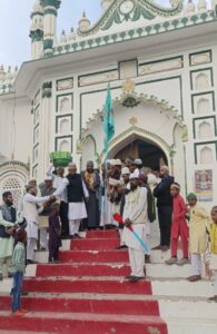नगर पालिका चेयरमैन सय्यद आबिद अली ने अपने साथियों के साथ फूल बरसा कर जुलूस का इस्तक़बल बड़ी मोहब्बत और ख़ुलूस के साथ किया ।